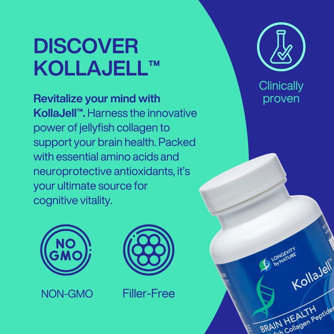 KollaJell™ is an advanced proprietary formula that is highly purified food grade jellyfish collagen. This unique first of-its-kind form of collagen is rich in nutrients that support brain health, including essential and nonessential amino acids, calcium-binding proteins, as well as naturally occurring minerals like magnesium, zinc, and copper. KollaJell™ has been shown to help improve memory, focus, and cognitive function. It can also help protect the brain from damage caused by aging and stress.