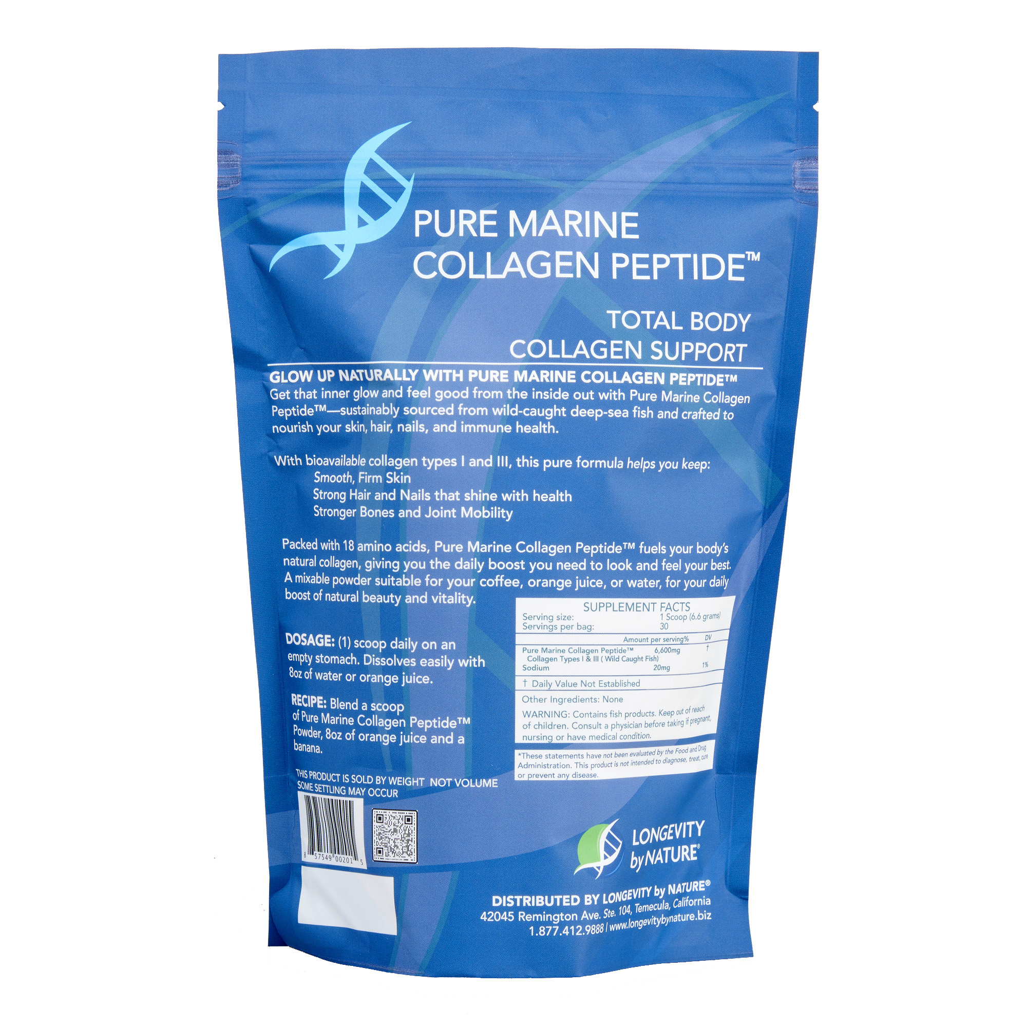 Hydrolyzed Fish Collagen (HFC) naturally supplies the body with 18 collagen amino acids that promote healthy connective tissue on a cellular level.